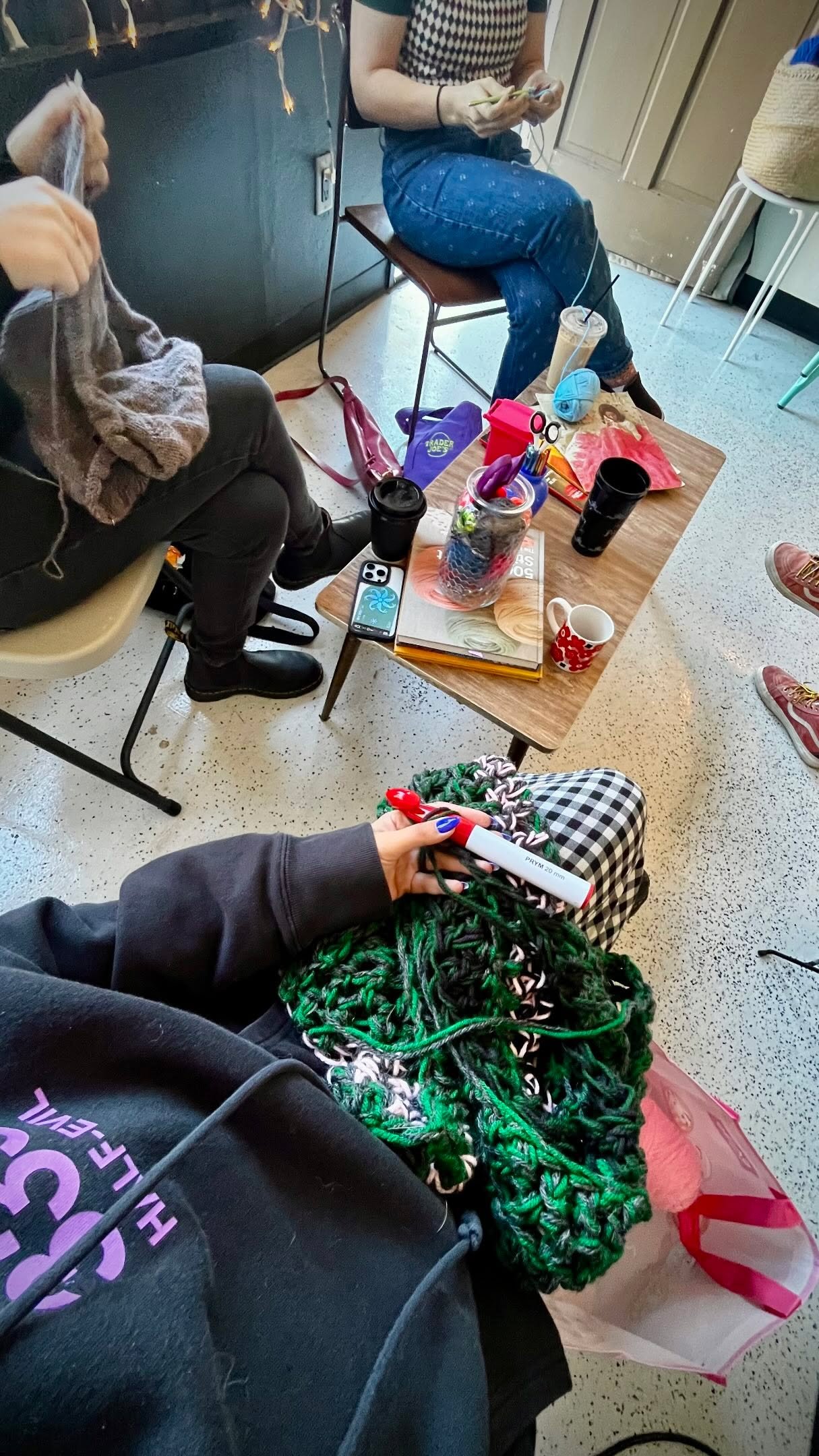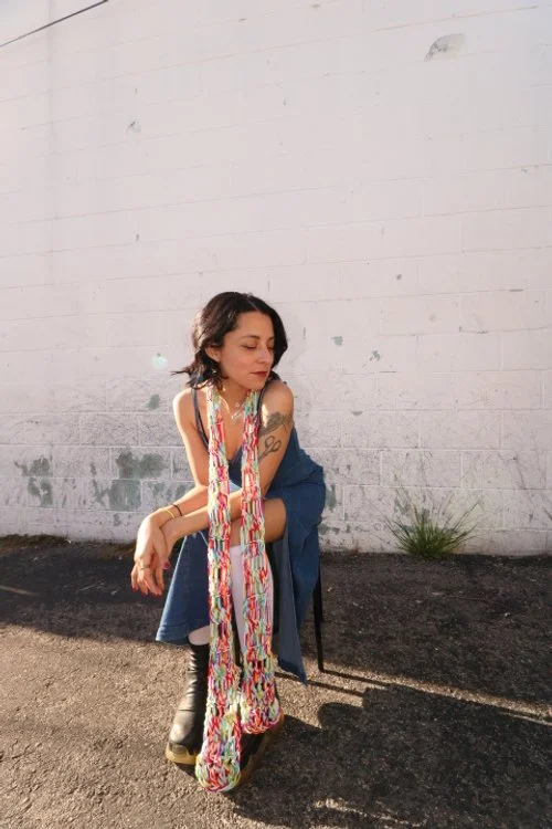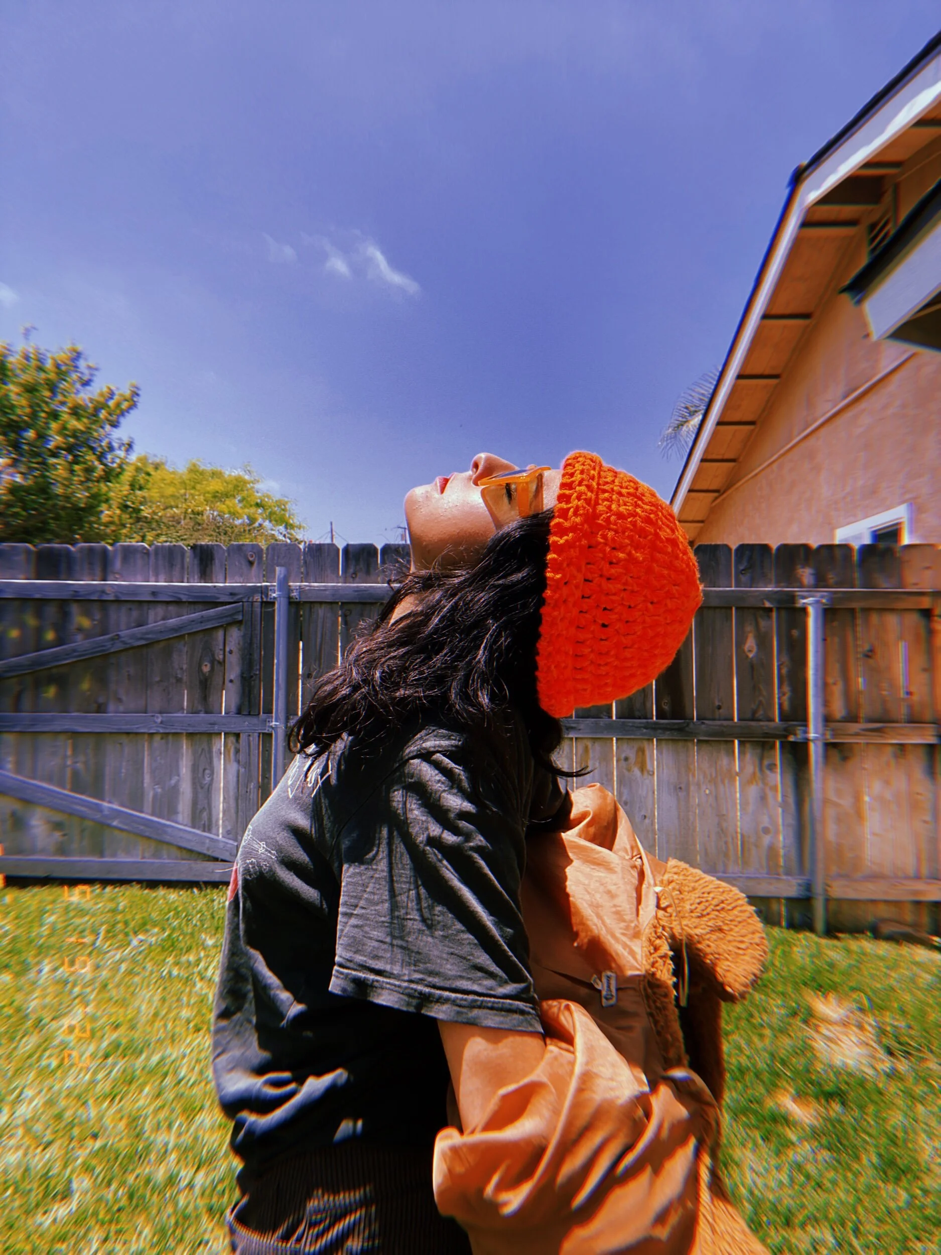 Her eye-catching crochet beanies + bucket hats are handmade to turn heads while holding a middle finger up to capitalism + the fast-fashion industry.